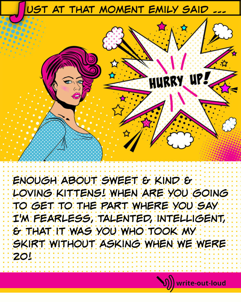 Loving a person dearly doesn't mean you stop noticing, or being irritated by, their lesser qualities and habits. Our speeches don't have to be about idealized versions of them. They are still who they are, regardless of the circumstances.